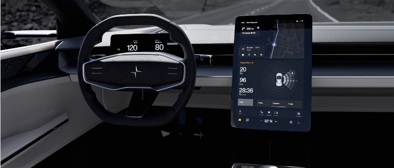 When it’s done, it automatically docks with the car again, and the video clips can be accessed on the 15-inch infotainment touchscreen in the cabin. That’s presumably running Android Automotive OS, as in the Polestar 2, though it does have a different layout in these concept renders compared to what we’ve seen in the production EV.